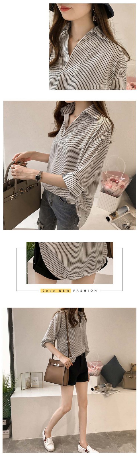 15分鐘前新品上市,勁爆特殺!全場大放送,單件低至NT$432,2020新款夏裝中長款韓版寬松顯瘦條紋襯衫女七分袖,廠家直銷,超值優惠,買到賺到!過後漲價! - 【買一送二】任選3件 僅需NT$1298,單件低至432
